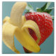 Eine Spaßfliese mit einer leckeren Banane und einer köstlichen saftigen Erdbeere.