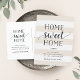 Annonces modernes et charmantes, faites connaître à vos amis et à votre famille votre nouvelle maison douce! Le design présente un arrière - plan rayé subtil dans le beige crème et blanc, avec "home sweet home" dans un script noir doux et la typographie de bloc. Utilisez les champs modèle pour ajouter votre entrée personnalisée, votre nouvelle adresse et vos noms. Les informations se répètent à l'envers avec de l'espace pour l'adressage du destinataire.