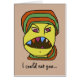 Personnage de dessin animé ne regardant pas trop gentil. Peau jaune, yeux pourpres, dents colorées. Copie noire "je pourrais vous manger…". Texte à l'intérieur de carte : "… ou je pourrais juste dire BONJOUR !". Le texte peut être édité.