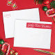 Cette étiquette d'adresse de retour de vacances élégante et festive dispose d'un arrière - plan rouge avec écriture blanche et typographie moderne. Le script de salutation dit "Le premier Noël du bébé". Customisez-le avec votre propre nom et adresse. Ce design s'harmonise avec notre carte photo de vacances "Baby's First Christmas".