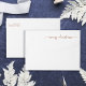 Ces étiquettes modernes et élégants de Noël de retour d'adresse enveloppent les mots "Joyeux Noël" dans un script de boho en terre cuite festif et le texte sur un arrière - plan blanc simple.