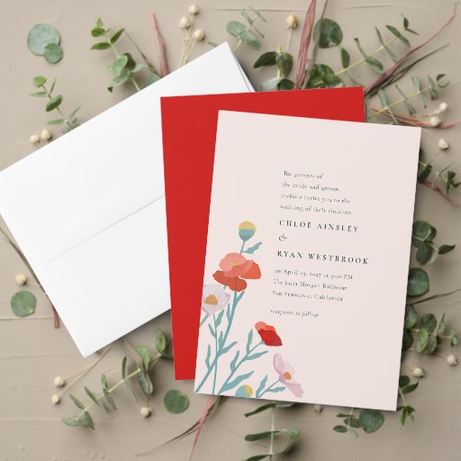 Ce faire-part de mariage est décoré de fleurs sauvages peints à la main, apportant une touche d'élégance naturelle à un design simple mais sophistiqué.