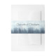 Cette belle bande de ventre est conçue pour tenir toutes vos enceintes mariages ainsi que l'invitation à faire une présentation vraiment élégante pour vos invités. Le design rustique simple comprend les noms du couple imprimés en écriture chic sur un paysage de montagne d'épinettes bleues brumeuses ou de pins.