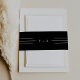 Cette bande de faire-part de mariage en monogramme noir élégant de la collection Everly est de type blanc immaculé, aux accents d'art déco géométrique et à l'espacement éditorial. Les motifs à trois lignes simples encadrent un texte élégant pour un look épuré, moderne et minimaliste, prêt pour le soir. Personnalisez ces bandes du ventre en papier avec les initiales du couple.
