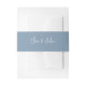Des bandes de ventre simples, modernes et élégantes ajoutent une finition chic à vos invitations de mariage. La conception en couleur solide comprend vos noms ou vos initiales en écriture manuscrite blanche. Conçu pour correspondre à nos invitations de mariage de Script manuscrit moderne. Couleur : Bleu Dusty, un bleu moyen muet.
