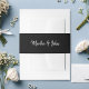 Le Black & White Minimal Script Faire-part de mariage Belly Band est l'exemple de l'élégance moderne. Avec son arrière-plan noir frappant et son script blanc propre, ce groupe de ventre enroule autour de vos invitations, présentant vos noms ou vos initiales de manière sophistiquée. Idéal pour les couples qui apprécient un design élégant et contemporain, il garde non seulement votre suite organisée mais ajoute également une touche raffinée qui améliore la présentation générale, rendant votre journée spéciale vraiment inoubliable.