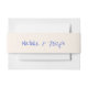 Un groupe de ventre mariage très élégant et unique, fantaisiste, bleu et crémeux. Cela correspond à l'ensemble du thème de suite fantaisiste écrit à la main par le mariage. Il a un arrière - plan crémeux et des noms de mariés et de mariés à la main bleue. avec un style fantaisiste debout au milieu.