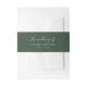 Élevez vos invitations de mariage avec ce groupe de ventre élégant et personnalisable avec les noms du couple heureux et leur date mariage. Cette belle bande de ventre, dans une teinte verte sophistiquée, cravate toute votre suite de faire-part de mariage ensemble pour un look poli qui reflète votre style personnel. Il est disponible dans une variété de couleurs pour correspondre parfaitement à votre thème mariage.