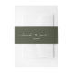 Découvrez le charme de ce ruban de ventre pour invitation de mariage vert forêt, l'accent parfait pour ajouter une touche de sophistication à votre suite d'invitation. Avec vos noms accentués par un cœur, ce ruban de ventre fera sûrement tourner la tête de vos invités avec les beaux détails de votre jour spécial.