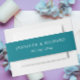 Ce groupe de ventre minimal possède un design élégant, avec en arrière-plan un élégant turquoise turquoise, une typographie classique blanche intemporelle se distingue, offrant une touche de sophistication. Le texte est personnalisable, permettant aux noms de la mariée et du marié, ainsi que leur date de mariage, de prendre le devant de la scène. Il s'agit d'un ajout chic à tout ensemble faire-part de mariage, ajoutant une touche personnalisée et raffinée à la célébration.