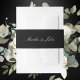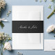 The Stylish Elegant Black & White Wedding Invitation Belly Band is a timeless accessory that elevates your wedding stationery. Featuring a classic black backdrop paired with crisp white accents, this belly band elegantly wraps around your invitations, showcasing your names or initials in a sophisticated manner. Ideal for couples who value modern elegance, it not only organizes your suite but also adds a chic touch that enhances the overall presentation, ensuring your special day is memorable and stylish.