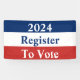 Au sommet de cette bannière rouge blanc et bleu se trouve l'année en blanc. Vous pouvez modifier l'année si nécessaire. (Montré : 2024) Le reste de la bannière dit "Inscrivez-vous pour voter".