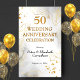 50e anniversaire Mariage Célébration Bannière Golden Party conçue avec des accents de feuilles de couleur or, texte et garniture sur un arrière - plan blanc. Le texte de la première page comprend : BIENVENUE, À notre, 50e anniversaire de Mariage, les noms des couples et la date anniversaire. Pour personnaliser, insérez simplement vos détails dans notre modèle facile, en remplaçant l'exemple de texte. Les grommets en métal en option sont disponibles pour aider à la manipulation de cette bannière. N'oubliez pas de consulter la carte d'invitation de célébration du 50e anniversaire du Mariage correspondante.