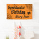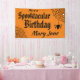 Accrochez cette Bannière Spooktacular Halloween Spiderweb Anniversaire pour célébrer un super jour spécial. Personnalisez avec son nom. Cette bannière éffrayante orange et noire présente une mignonne araignée suspendue à une toile d'araignée et des polices Halloween déplaisantes.