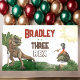 Célébrez le troisième anniversaire de votre enfant avec un rugissement à l'aide de notre charmante bannière d'aquarelle Three Rex Birthday. Dotée d'adorables dinosaures et de couleurs naturelles muettes, cette invitation est parfaite pour les petits paléontologues. Customisez le nom d'une fête amusante et mémorable à laquelle les invités seront heureux d'assister. Faites de la journée spéciale de votre enfant une journée vraiment inoubliable avec cette bannière délicieuse. N'oubliez pas les tasses, assiettes, serviettes et plus !