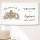 Cette bannière de Baby shower de Noël est décorée avec des biscuits de pain d'épices aquarelle et de la verdure de pin. Facile à personnaliser. Parfait pour un baby shower festif de garçon, de fille ou de sexe neutre. Aquarelle originale © Michele Davies.