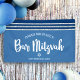 Soyez fier, réjouissez-vous et mettez en valeur ce jalon de votre Bar Mitzvah préféré ! Accrochez cette bannière cool, unique, moderne et personnalisée pour ajouter à son jour spécial. Une typographie en écriture blanche et grasse, une étoile de David et un graphique inspiré du tallit rayé de bleu marine et d'argent scintillant sur un fond simple de bleu barbeau. Personnalisez le texte personnalisé avec le nom et la date de votre Bar Mitzvah ou un message personnalisé. Garantie de préserver les souvenirs chéris de son occasion spéciale ! Des invitations, des étiquettes d'adresse, des autocollants, des classeurs de souvenirs et d'autres cadeaux de Bar Mitzvah assortis et coordonnés sont également disponibles dans cette collection tendance et spéciale.