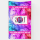 Typographie éffrayante d'Halloween moderne sur une pleine lune rouge avec chauve-souris et toiles d'araignée avec une arche dans les tons artistiques colorés de Noir, violet, rose, rouge et bleu. Ajoutez votre nom de famille et faites peur à tout le monde à votre fête d'Halloween !