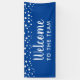 Bienvenue dans la bannière de l'équipe avec du texte entièrement personnalisable. Confetti cercles et étoiles au sommet. Modifiez l'arrière - plan bleu en une autre couleur si vous le souhaitez. Bienvenue aux nouveaux membres ou employés avec une bannière amusante.