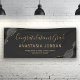 Célébrez son jalon en style avec cette bannière de graduation, avec agate d'aquarelle noire taillée avec fausse parties scintillant d'or dans deux coins. Les mots "Félicitations Grad" (ou le texte de votre choix) apparaissent dans un élégant script d'écriture dorée au-dessus du nom de votre diplômé sur un arrière - plan noir foncé. Ci-dessous, ajoutez le nom de son école et de son année de diplôme.