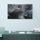 Dreamy monochromatic space galaxy nebula astronomy watercolor painting, filled with shining white stars, dark gray cloudy space dust, and watercolor painting stains and splatters, black and white colors with faded shades of dark blue, navy blue and brown universe artwork artiwork.