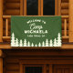 Banderole de bienvenue en vert pour un week-end de filles destination glamping de camp met une ambiance instantanée "Camping Bride" et aide les invités à trouver le camp de base dès leur arrivée. Conçu pour les cabines, les maisons de lac, les gîtes de montagne, les campings et les locations de parcs nationaux, cette bannière personnalisée présente le nom et l'emplacement du camp de la future mariée afin que vous puissiez marquer l'escapade pour votre fête de bachelorette de destination. Utilisez-le à l'entrée du lodge, à la porte du bunkhouse, au pavillon du camping, à la balustrade du porche ou à la table d'enregistrement pour accueillir l'équipage, marquer les points de rencontre et ancrer votre thème d'aventure rustique pour les randonnées, les journées en bateau, les arrêts vinicoles et les nuits douillettes de feu de camp. Les oeuvres d'art de plein air et la typographie classique du camp se sentent comme à la maison avec les vibes lac, rivière, tente, montagnes et feu de camp, et il coordonne sans effort avec les invitations assorties, les faveurs et le décor pour une suite cohésive. Parfait pour une fête de bachelorette ou un week-end de filles détendues au bord du lac, cette bannière d'accueil durable sert de toile de fond de photo amusante et de garde de la mariée après la fête. Si vous planifiez un week-end de destination en plein air avec un confort glamour et des plans d'aventure, cette bannière d'accueil de bachelorette du camp est le signe polyvalent sur le thème qui l'assemble.