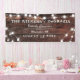 Célébrez votre fête de réunion en famille avec ce design de bannière familiale moderne et rustique, avec d'élégantes lampes à cordes sur une texture en bois montrant votre nom de famille, la date de la célébration et le lieu. Parfait pour un pique-nique élégant, un barbecue ou tout simplement comme signe de bienvenue branché.