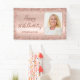 Elégant Moderne Sparkle rose or parties scintillant métal Personnalisé Photo Happy 50th Birthday Party Banner. Cette Fille Adulte feminine CINQUANTE (FIFTIETH) décoration de fête d'anniversaire avec du texte "Happy 50th Birthday" (OU N'IMPORTE QUEL ÂGE) dans un script de calligraphie manuscrit élégant et nom personnalisé sur un arrière - plan de papier métallique contrebalancé en or rose rousse ou rose avec cadre de parties scintillant glam lâche autour. Idéal pour une fête d'anniversaire féminine adulte ou féminine, cela saisit parfaitement l'essence d'une fête d'anniversaire rose moderne en or ou en parties scintillant rose vif. Parfait pour une bannière d'accueil ou même une décoration de fête.
