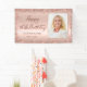 Elégant Moderne Sparkle rose or parties scintillant métal personnalisé Photo Happy 60th Birthday Party Banner. Cette Fille Adulte Feminine SIXTIETH (SIXTIETH) décoration de fête d'anniversaire avec texte "Happy 60th Birthday" dans un script de calligraphie manuscrit élégant et nom personnalisé et votre photo, date sur rose rousse ou rose faux feuille métallique brossé arrière - plan avec cadre de parties scintillant glam lâche autour. Idéal pour une fête d'anniversaire féminine adulte ou féminine, cela saisit parfaitement l'essence d'une fête d'anniversaire rose moderne en or ou en parties scintillant rose vif. Parfait pour une bannière d'accueil ou même une décoration de fête.