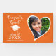 Cette élégante bannière orange et blanche pour la classe de 2025 propose une photo en forme de coeur, un dicton "Félicitations, Grad !" et l'illustration casquette d'un diplômé. Le texte est en blanc sur cette conception. S'il vous plaît personnaliser avec le nom du diplômé, télécharger une photo personnalisée par modèle, et changer un an avant de commander.