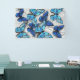 Vertical composition of réalistes, blue and white morpho butterflies on gray textured background. Morphine bleu.
