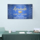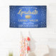Ajoutez une touche personnalisée aux décorations de la fête de fin d'études supérieures ou secondaires avec cette bannière bleue, or et blanche personnalisée. Tout le texte est simple à customiser pour inclure le nom, l'année de classe, l'école, le diplôme, les distinctions honorifiques, la citation inspirante ou tout autre texte de votre choix. Le design comprend un arrière - plan en acier inoxydable brossé bleu royal, un casquette en carton de faux papier, des points de confetti festifs, une typographie moderne élégante et une calligraphie manuscrite. Veuillez noter que l'or est imprimé en couleur et non en métal. Ce signe de fête est une façon élégante de célébrer la journée spéciale. Félicitations au diplômé !