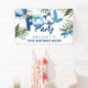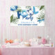 Bannière d'anniversaire simple Cool Blue Boy's Pool Party. Le design se compose d'un simple arrière - plan blanc décoré de feuillage tropical, d'un ballon de plage, d'une lunette de soleil et d'une soirée amusante autour de la PISCINE ! Le modèle sans police moderne est très facile à customiser en utilisant le modèle fourni. Invitation parfait pour les garçons de tous âges !