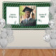 Cette bannière verte rayée de la photo Graduation est exactement ce que votre grand a besoin de voir pour les accueillir dans leur maison, fête, événement. La bannière dit : Félicitations en police de script Le nom de Grad et la Classe de 2025 est modifiable.