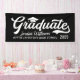 La bannière de la fête de graduation présente un design de typographie simple et élégant avec le texte de l'écriture savante "Graduate" et un casquette de grade avec un accent savoureux. Personnalisez avec le nom de votre diplômé, l'année de classe et le lycée. Notez que les couleurs noir et blanc peuvent être modifiées pour correspondre aux couleurs de l'école ou de la fête.