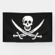 Le pavillon de Jack Rackham diffère par l’utilisation de deux sabres au lieu de deux os entrecroisés en dessous de la tête de mort. Les sabres représentaient sa puissance.