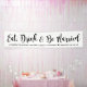 Élégante bannière de réception de mariage avec "Eat Drink & Be Married" en script de calligraphie noir tendance avec texte personnalisé moderne pour féliciter la mariée et le marié. Personnalisez avec leur nom et date de mariage. accent du coeur. Les couleurs noir et blanc peuvent être modifiées.
