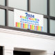 Cette jolie bannière de remise de diplômes 2024 personnalisable présente un casquette cool au-dessus de l'écriture colorée et une rangée de crayons en arc-en-ciel. Cool maternelle diplômé signe en couleurs amusantes pour la dernière journée de l'école primaire avec votre nom d'école en bleu. Félicitations à nos jeunes diplômés !