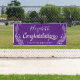 Bannière d'éléments floraux chic et design pour quelqu'un qui prend sa retraite. Personnalisez avec votre nom de récupération et le texte Happy Retirement pour créer votre propre bannière personnalisée. Style de typographie félicitations texte accentué avec des éléments blancs du design. Cette bannière de retraite est parfaite dans le cadre de votre décor de fête ou de fête. La couleur arrière - plan violette peut être changée en la couleur de votre choix.