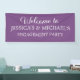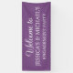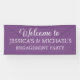 Banderole d'accueil de la fête d'engagement violet en écriture mignonne et élégante, personnalisée avec le nom de la mariée et du marié à être. La couleur arrière - plan de cette bannière est personnalisable avec l'outil de design de Zazzle, donc quel que soit le thème de couleur de votre fiançailles, vous pouvez créer votre bannière pour correspondre. Contactez-moi pour obtenir de l'aide sur la personnalisation ou pour demander des produits supplémentaires pour votre suite.