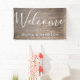 Élégant Script Rustic Mariage Affiche de bienvenue bannière. Bienvenue à votre famille et à vos amis avec ce simple modèle de signalisation mariage de style ferme. Personnalisez ce panneau mariage élégant et élégant avec les noms et la date.