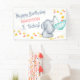 Personnalisez cette jolie bannière de fête d'anniversaire pour votre petite fille. La conception a une aquarelle illustration d'un bébé éléphant attrapant des étoiles tombantes et les coeurs d'amour dans un parapluie. Le texte dit "joyeux anniversaire [nom] [âge aujourd'hui!]" que vous pouvez customiser pour votre enfant. Un design doux et capricieux avec une palette de couleurs de corail et gris.