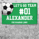 Bravo à votre équipe avec cette bannière Green White Soccer Team. Personnalisez avec le numéro et le nom de votre athlète et le nom de l'équipe. Vous pouvez même changer le message. Montrez votre esprit d'équipe cet été.