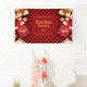 Donnez le ton pour une soirée festive avec cette bannière avec des cadeaux enveloppés de façon rustique sur un chèque de buffle rouge et noir confortable avec typographie vintage.