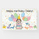 Rendez l'anniversaire de votre Cockapoo/Cavapoo marle chocolat spécial avec notre conception adorable à thème de chien avec un chapeau de fête et des ballons colorés. Personnalisez cette bannière de fête d'anniversaire amusante avec le nom de votre chien pour une célébration qui fait aboyer de joie !