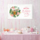 Bright tropical floral + feuillage photo bannière fête d'anniversaire Un design moderne d'aquarelle vive. Fleurs tropicales amusantes, fruits d'été et flamants roses. Partie d'une collection tropicale et lumineuse.