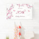De beaux papillons roses et cerisiers fleurissent sur un arrière - plan blanc. Customisez cette bannière de réception d'anniversaire avec le nom et l'âge de la fille d'anniversaire dans une police élégante.