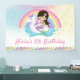 Sympa sirène et Rainbow Unicorn Pool Party Welcome Backdrop Sign, avec une jolie sirène, mignonne monocoque floatie et un ciel arc-en-ciel fantaisiste. Personnalisez cette toile de fond avec votre propre libellé facilement et rapidement, appuyez simplement sur le bouton customiser pour réorganiser et formater le style et le placement du texte. Design exclusif (c) Le Happy Cat Studio.