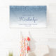 Bienvenue aux invités avec cette bannière chic et glamour de fête du cinquantième anniversaire, avec une bordure brillante bleue fausse parties scintillant goutte-à-goutte et vert ombre arrière - plan. Personnalisez-le avec son nom en écriture manuscrite bleue, avec l'anniversaire et la date ci-dessous en police bleue sans serif.