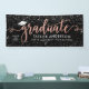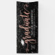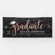 Élégante et glamour bannière de graduation personnalisée signe célèbre votre grade dans le style! Design propose un casquette de grade, un "Graduate" en faux rose d'or script, et un texte personnalisé moderne qui peut être personnalisé avec le nom du diplômé, l'année de classe et l'école. Comprend une bordure de confettis blanc et argent étincelant. La couleur noire de l'arrière - plan peut être modifiée.